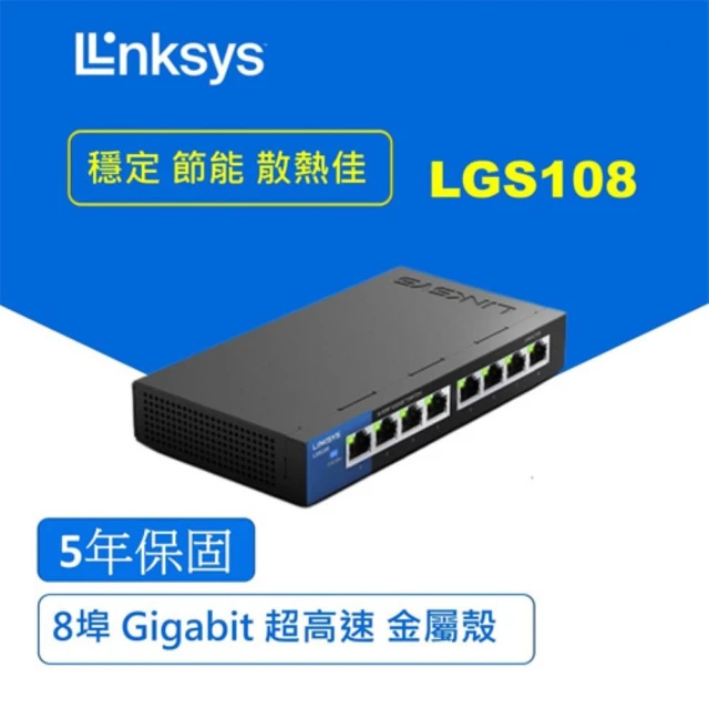 Linksys8埠 Gigabit 超高速乙太網路交換器 LGS108 鐵殼