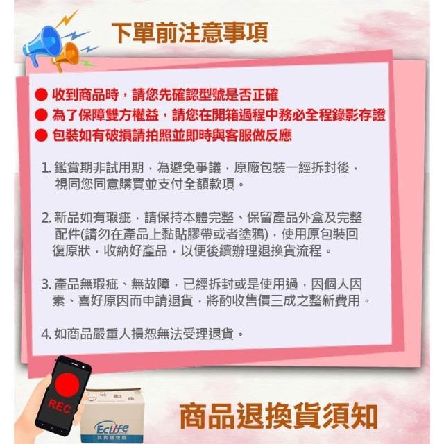 - 為保障您購物權益,開箱過程請全程錄影;如有問題請使用APP透過「問問」與商店聯繫,祝您購物愉快。