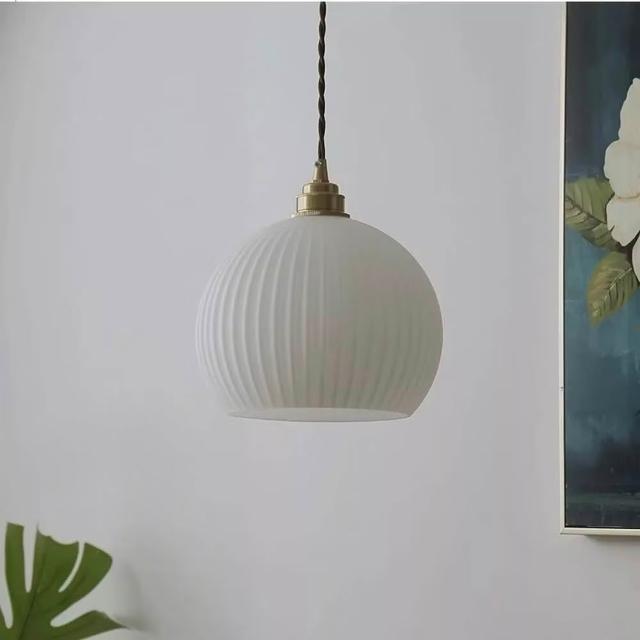 雨果燈飾日式復古全銅長虹玻璃吊燈(附燈泡)|餐桌中島/玄關|老宅風質感單吊燈