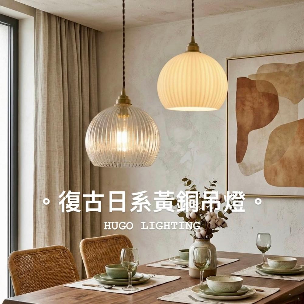 雨果燈飾日式復古全銅長虹玻璃吊燈(附燈泡)|餐桌中島/玄關|老宅風質感單吊燈