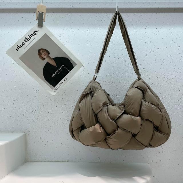 每個顏色都超美🤎 韓國🇰🇷代購 暗黑重磅設計巨有型羽絨編織雲朵包/枕頭包/單肩包/側背包(7色)