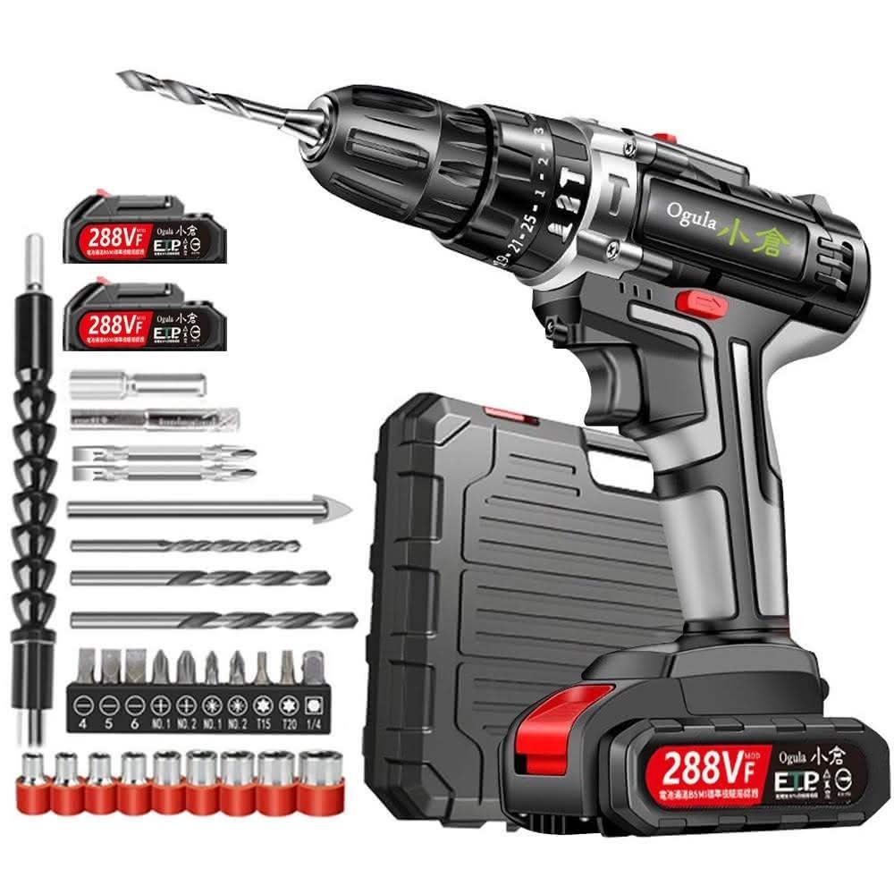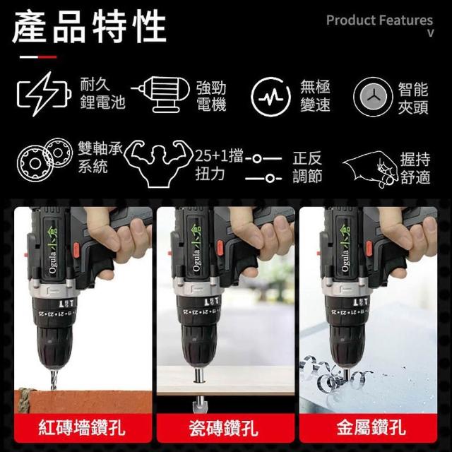 Ogula 小倉電鑽 衝擊鑽 電動起子 可鑽水泥墻 工業級手電鑽 鋰電鑽 電動螺絲刀 衝擊電鑽超大扭力-雙速正反轉