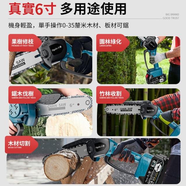 Ogula 小倉鏈鋸機 6寸無刷電鏈鋸(十節兩電+2根鏈條)送收納箱(電鏈鋸/鏈鋸機/電動鏈鋸/伐木鋸)