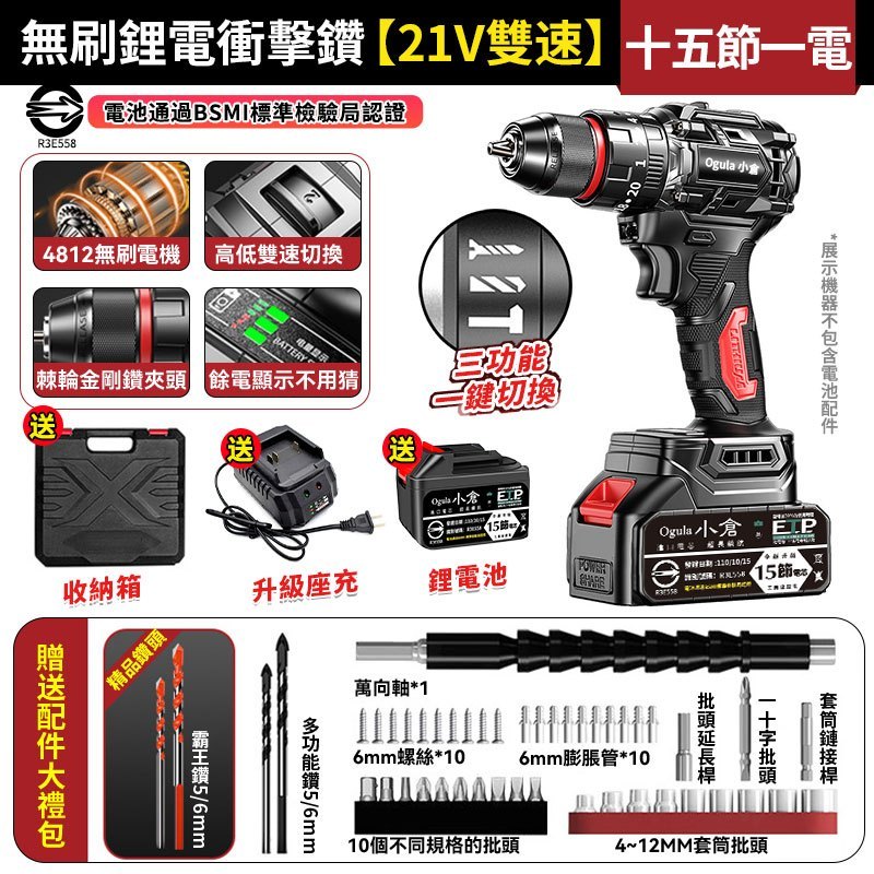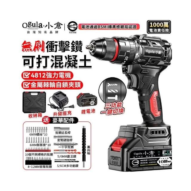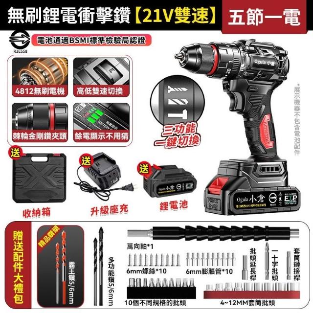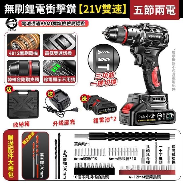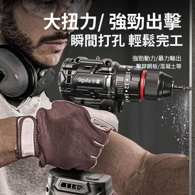 Ogula 小倉電鑽 無刷衝擊鑽 21V鋰電鑽 起子機 三功能電鑽 防水電鑽-可鑽水泥墻/混凝土 品牌保障-售後無憂