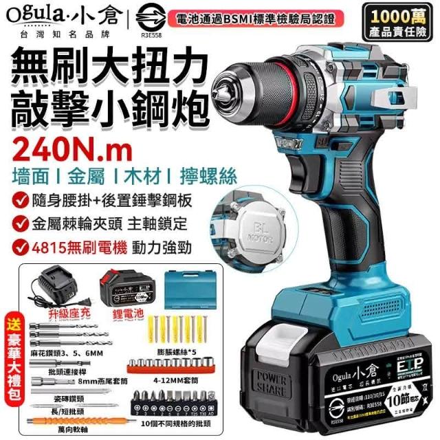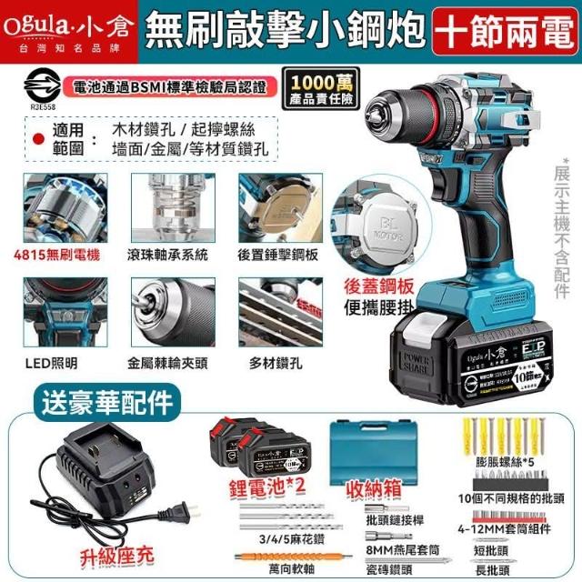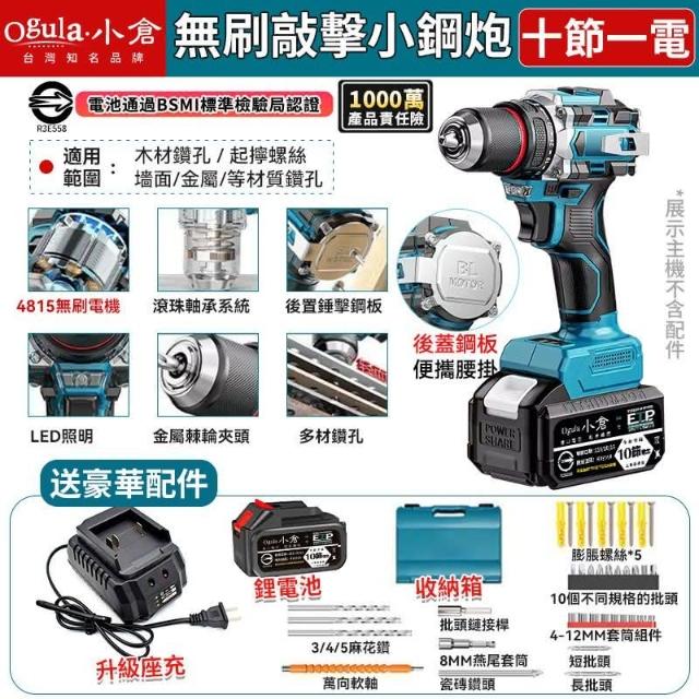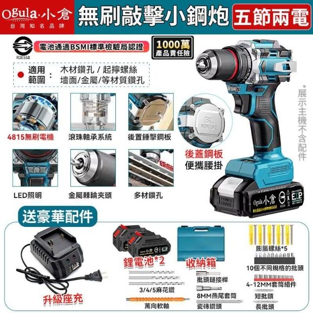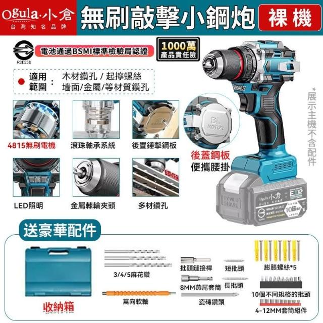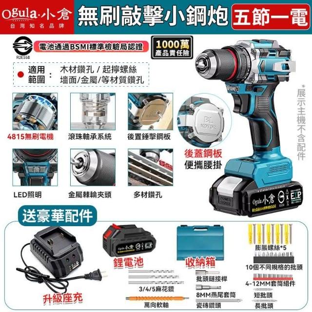 Ogula 小倉無刷電鑽 電動起子 衝擊鑽 便攜腰掛+可敲擊 三合一多功能鋰電鑽 可打水泥墻/混泥土