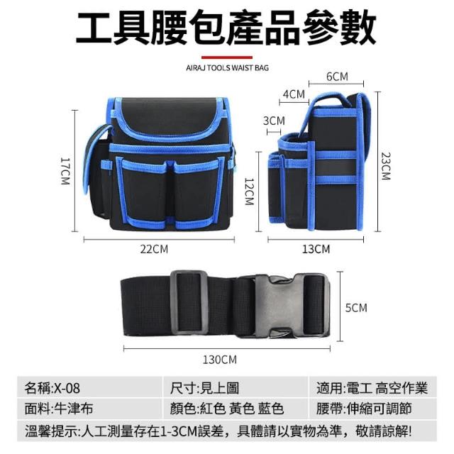 - 結實腰帶/多個工具袋