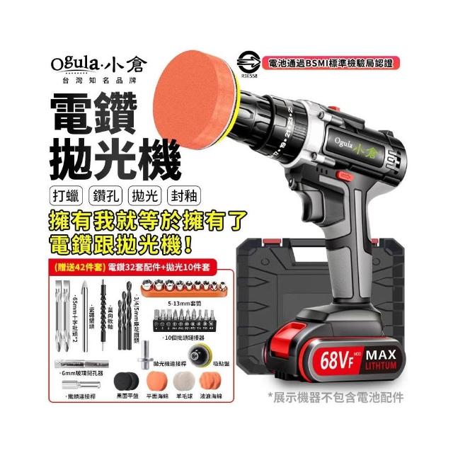 Ogula 小倉電鑽打蠟機 拋光機 電動起子機 汽車電鑽拋光機 電動工具電動螺絲刀 贈42件套 電鑽/拋光二合一正反轉