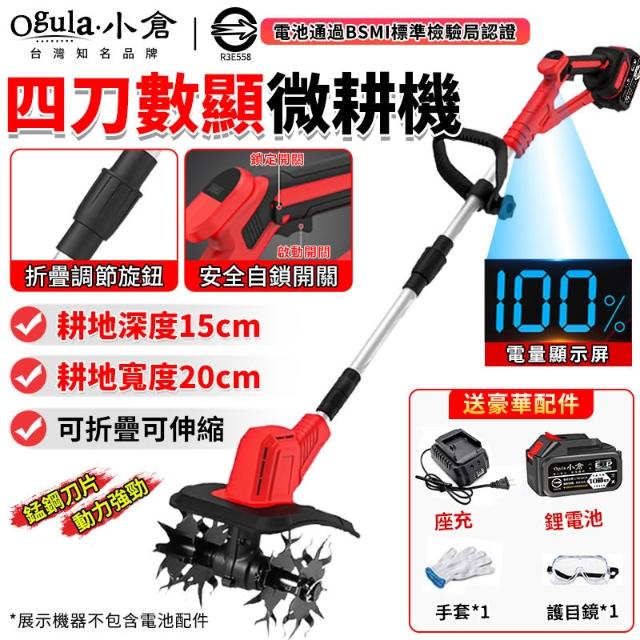 Ogula 小倉電動翻土機 鬆土機 微耕機 耕田機 旋耕機 農用翻土機 手持微耕機 農用耕地鬆土機 智能數顯屏/可折疊伸縮
