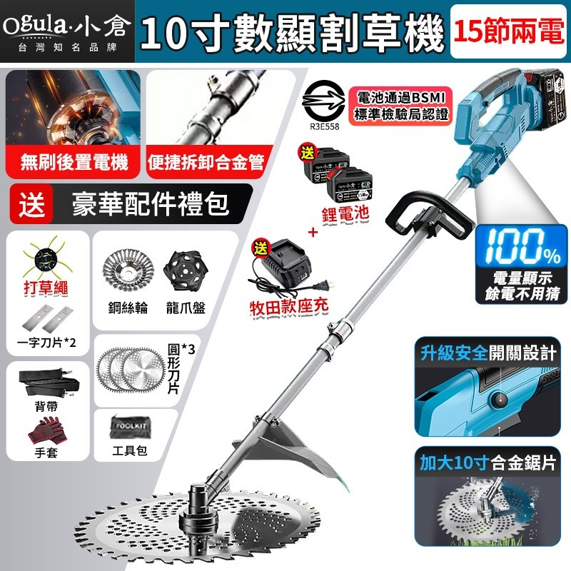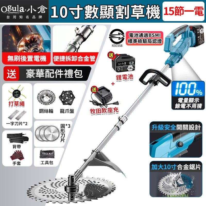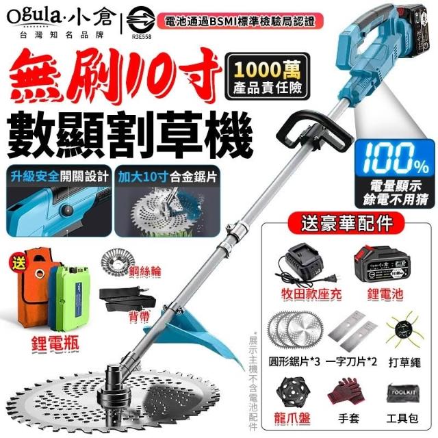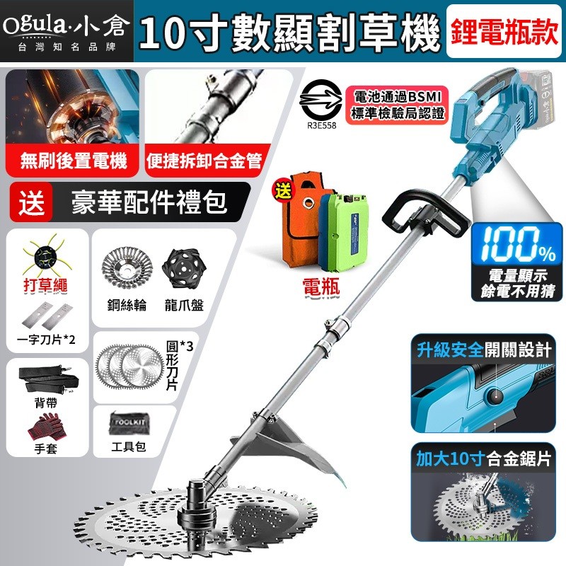 Ogula 小倉割草機 10寸電動割草機 除草機 無刷 後置電機-贈背帶 電量顯示 多功能鋰電除草機 打草機