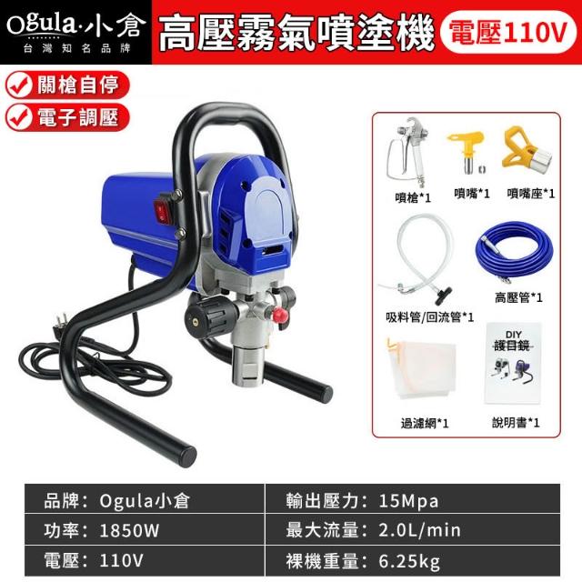 Ogula 小倉高壓無氣噴塗機 噴塗機 無刷智能噴塗機 噴漆機 110V可調壓/關槍停機 工程電動噴塗機 家用噴漆工具