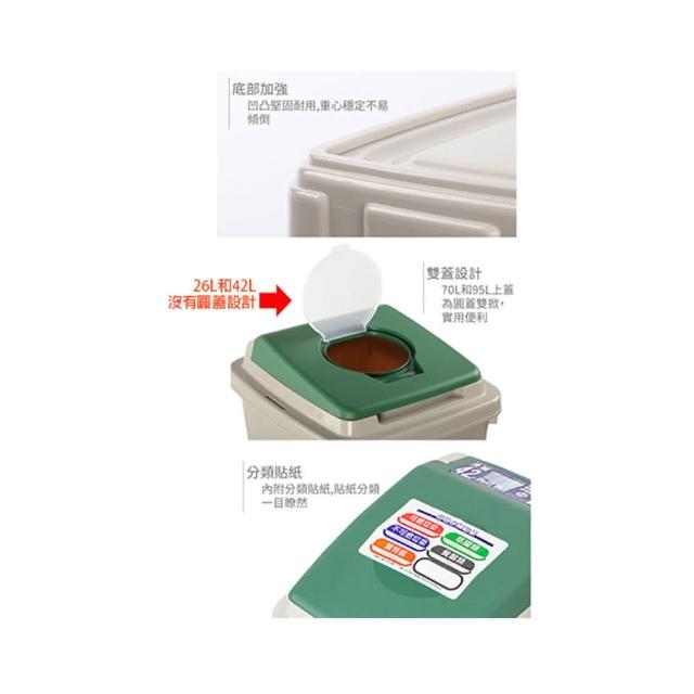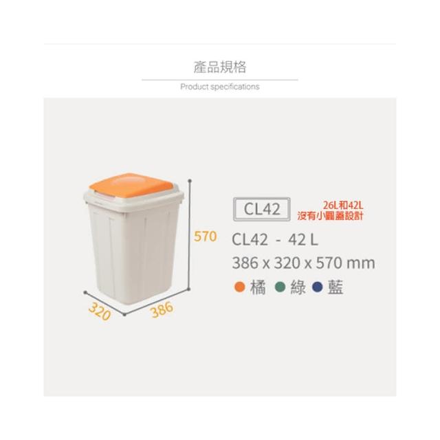 KEYWAY 聯府1入裝/聯府CL42/日式分類附蓋垃圾桶/42公升/手掀蓋垃圾桶/三色分類垃圾桶(附蓋垃圾桶)
