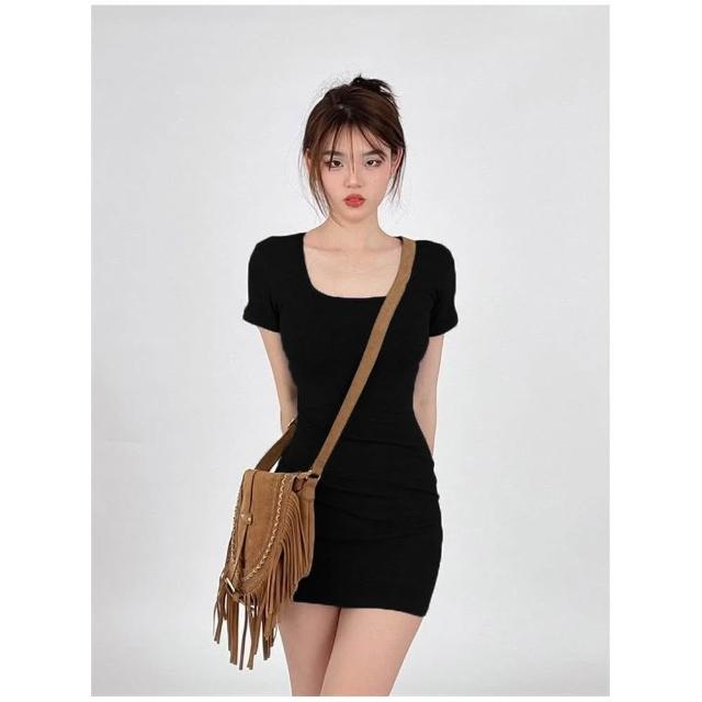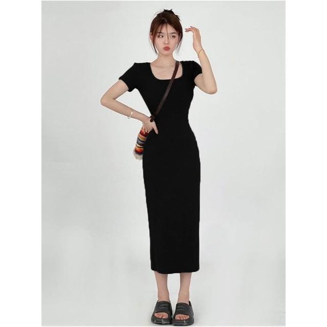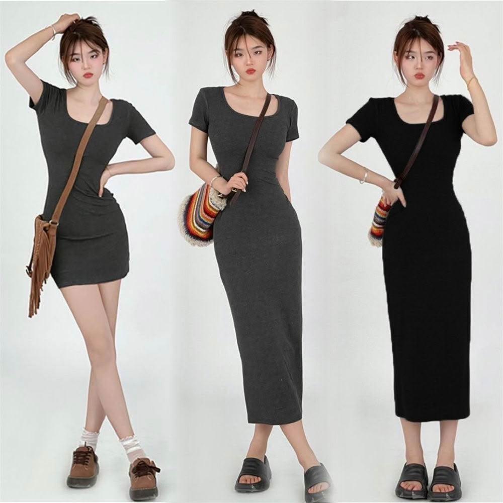 FUXI 短袖修身T恤裙女 洋裝 連身裙 包臀長裙 連身短裙 收腰顯瘦包臀打底裙 裙子 素色內搭裙