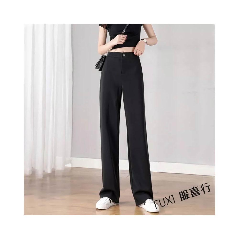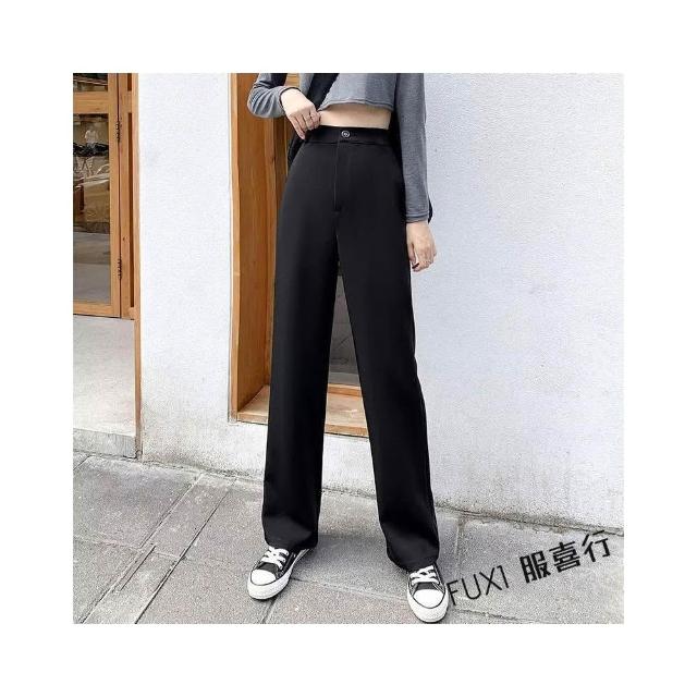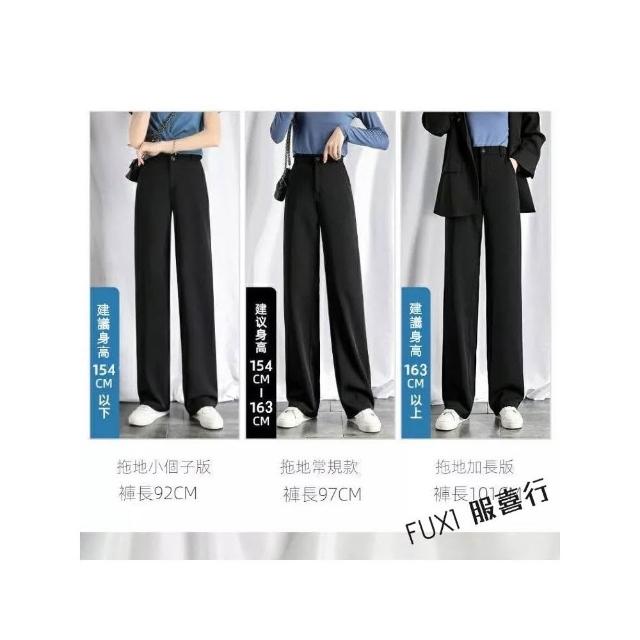 FUXI 西裝褲 闊腿褲 高腰垂感寬鬆顯瘦長褲 直筒褲 休閒褲 黑色褲子 拖地褲子