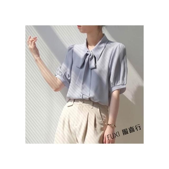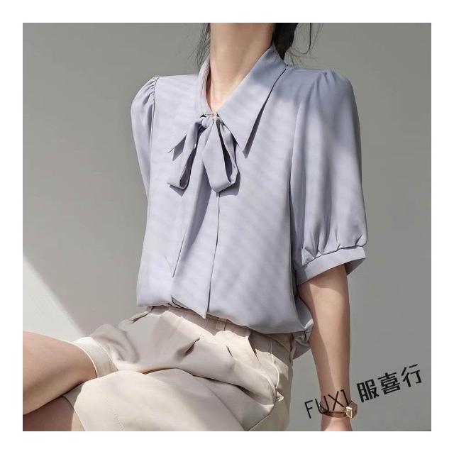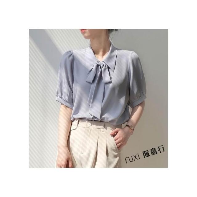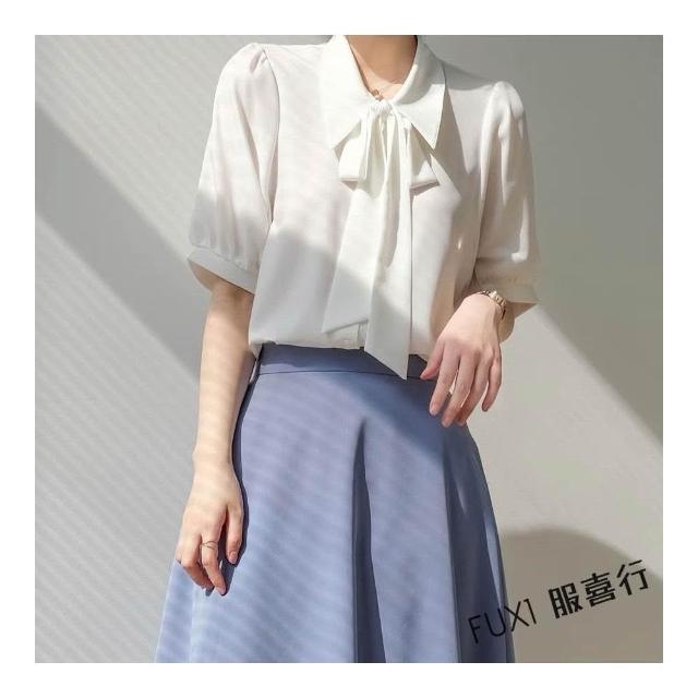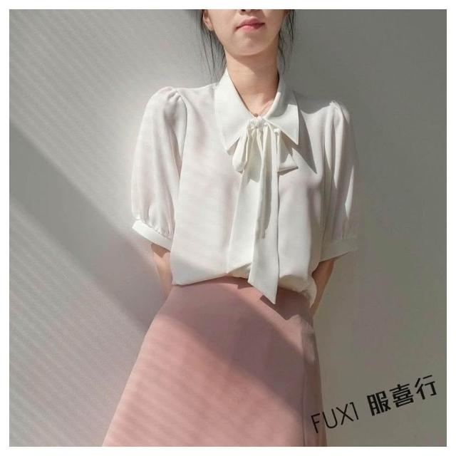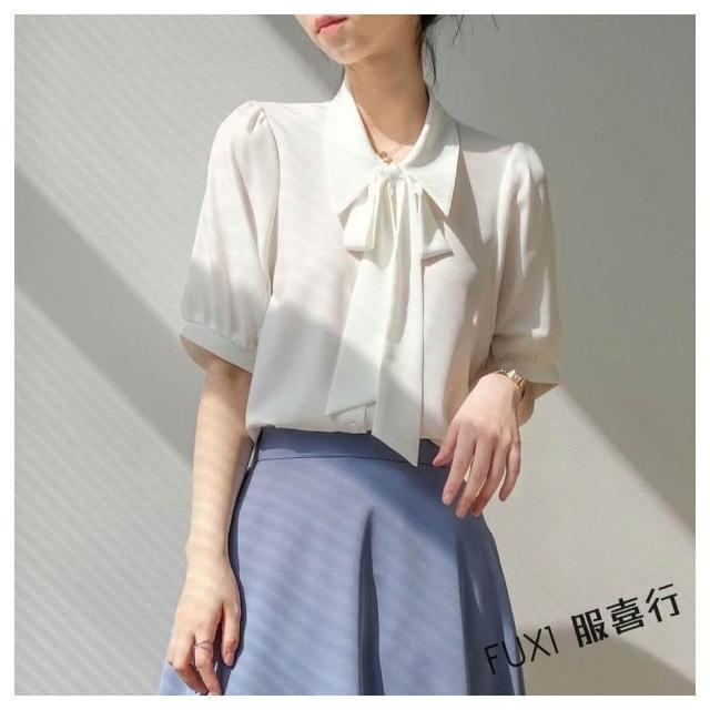 雪紡衫 短袖襯衫女 小個子 垂感 韓版飄帶上衣 溫柔風 氣質職業襯衫 防皺襯衫