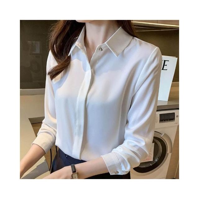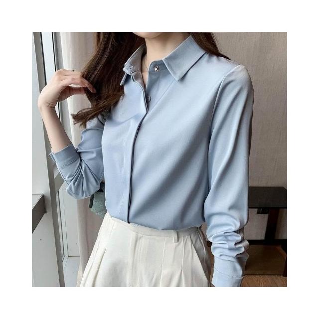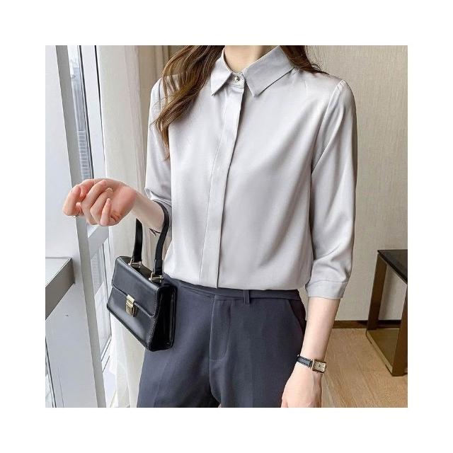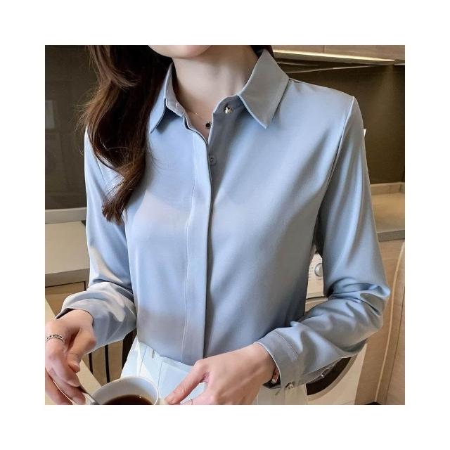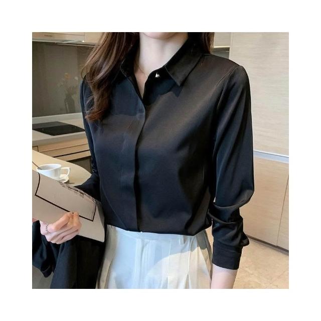 FUXI 長袖襯衫女 抗皺襯衫 免燙襯衫 職業襯衫 白襯衫女生 冰絲涼感緞面襯衣 高端時尚氣質 正裝面試工作服 黑色襯衫