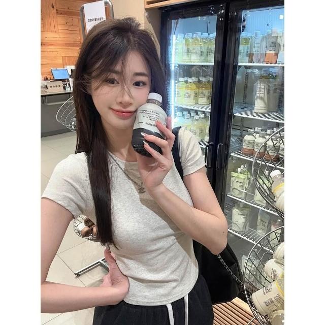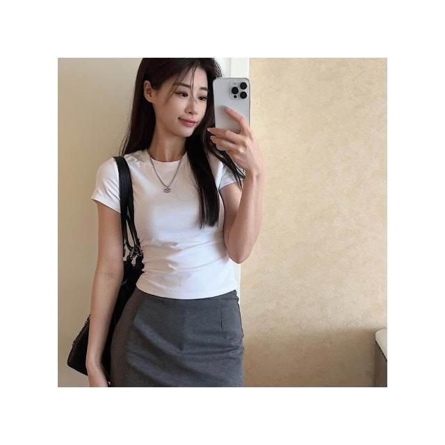FUXI 短袖t恤女 打底衫 內搭上衣 白色短袖上衣 修身辣妹正肩t恤 緊身彈力上衣 素色短版上衣 女裝 衣服
