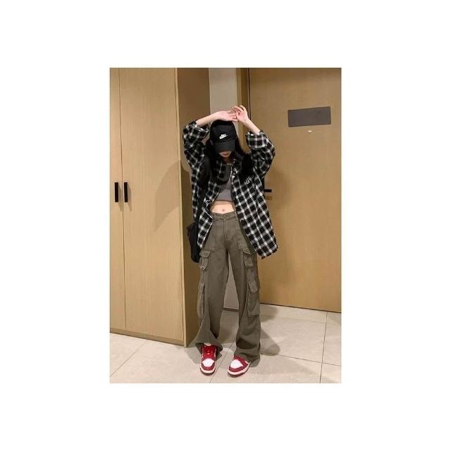 FUXI 黑白格子襯衫女 長袖襯衫外套 韓版寬鬆復古設計感襯衫 慵懶風長袖襯衣 小外套 防曬外套 女裝 衣服