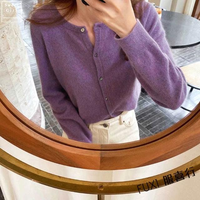 FUXI 針織外套 針織開衫 針織衫 韓版軟糯短板小外套 溫柔素色打底內搭 寬鬆上衣 慵懶風 外穿開衫 毛衣外套女