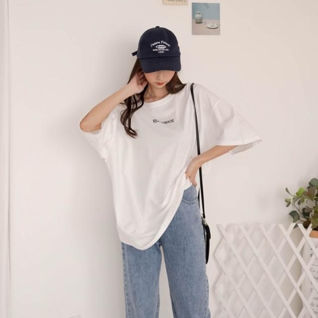 「現」情侶款!簡約英文READY寬鬆短袖上衣-Desire shop