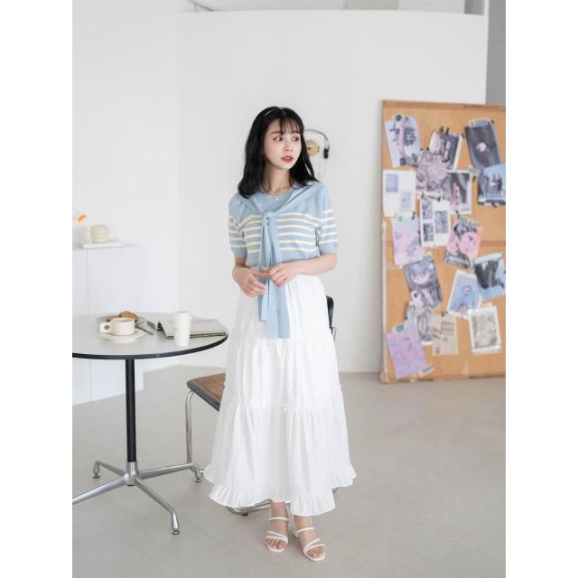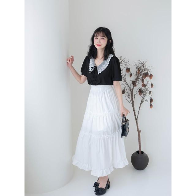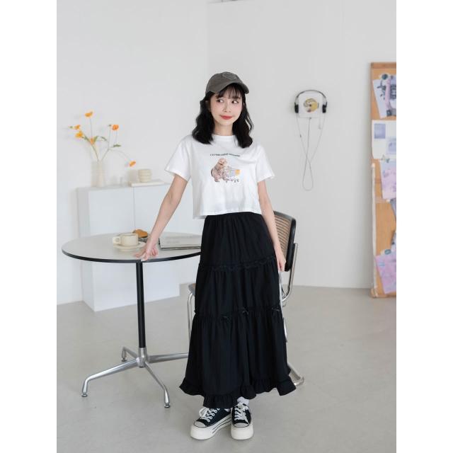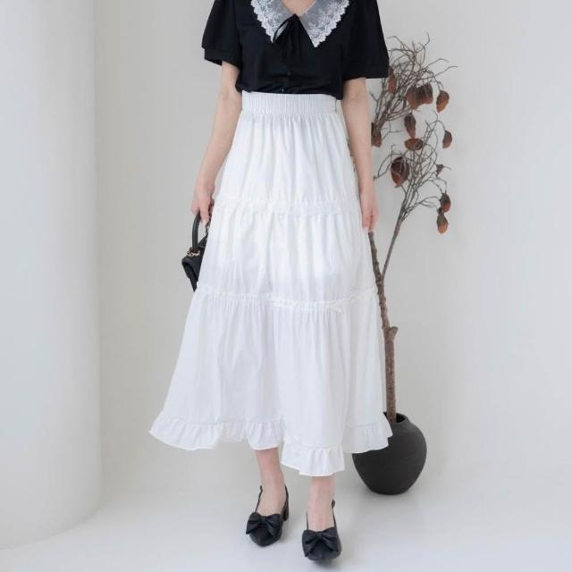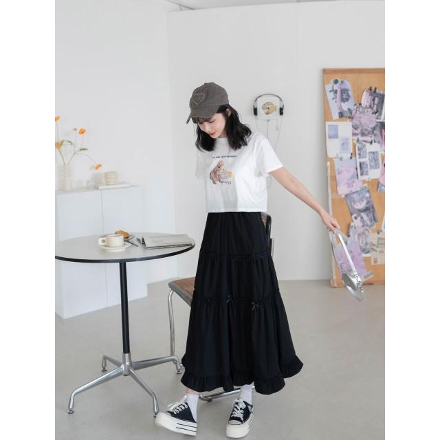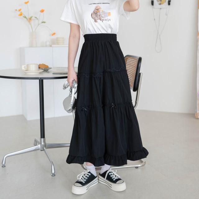 腰鬆緊蕾絲蝴蝶結蛋糕長裙【RC931351】DesireShop