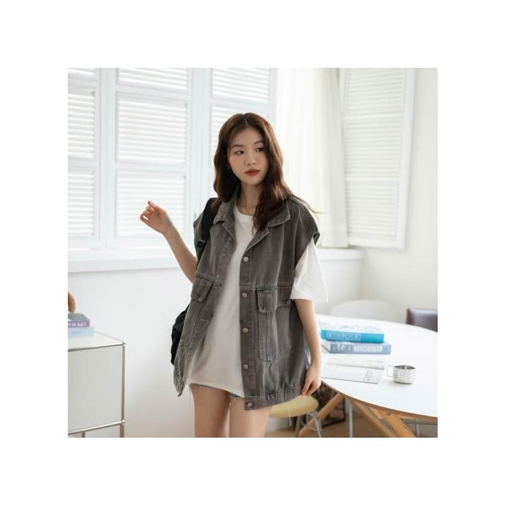 貨~Denim假期~寬鬆大口袋牛仔背心【RN500591DesireShop