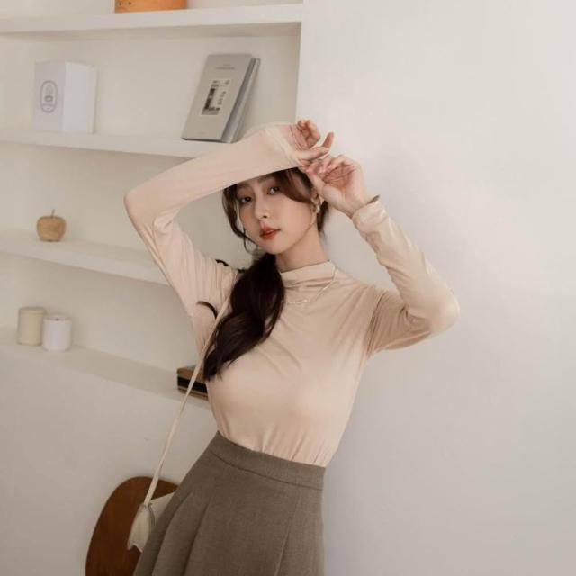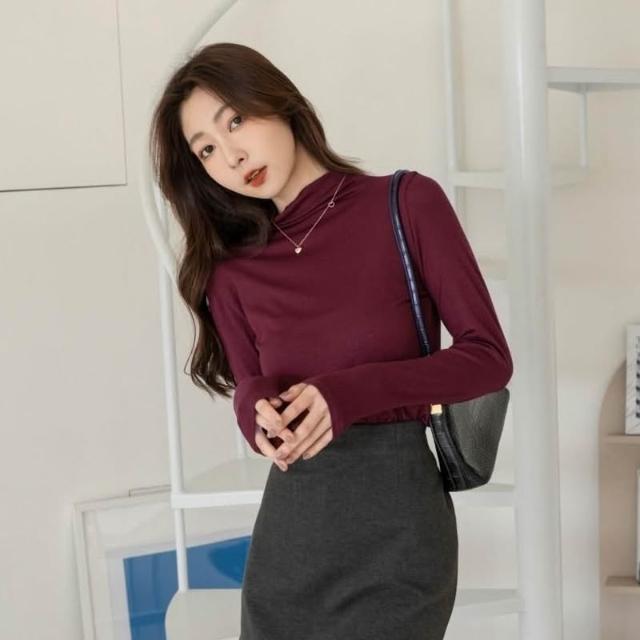 Desire shop「現」秋冬好夥伴ü素面中領長袖打底上衣