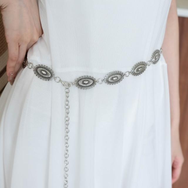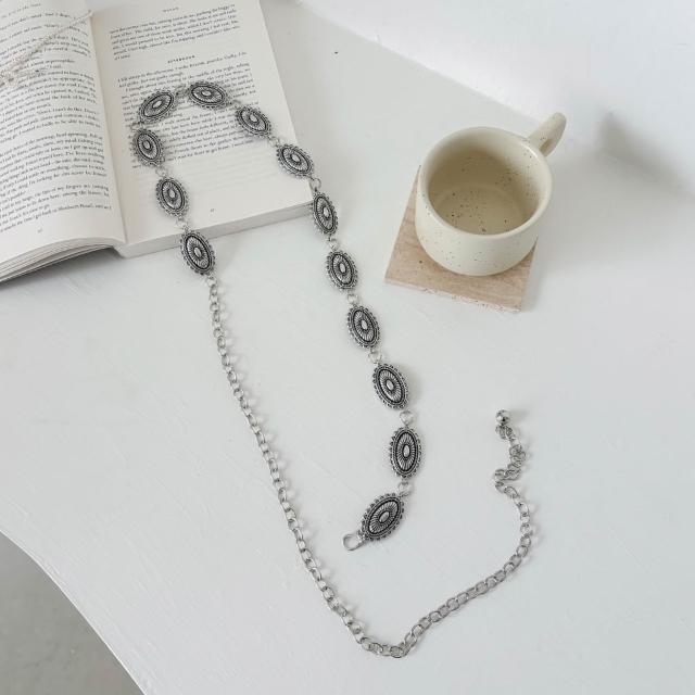 「現」收腰神器√雕花鍊條腰鍊 金屬腰鍊 腰帶 銀色腰鍊-DesireShop