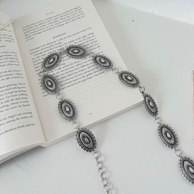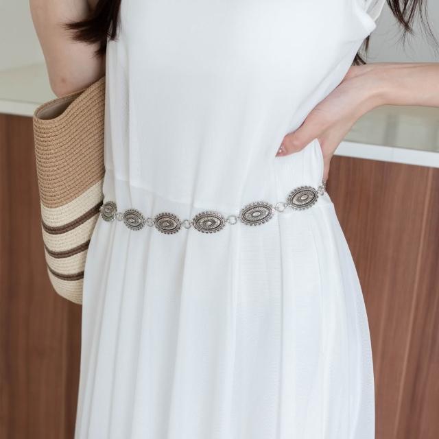 「現」收腰神器√雕花鍊條腰鍊 金屬腰鍊 腰帶 銀色腰鍊-DesireShop