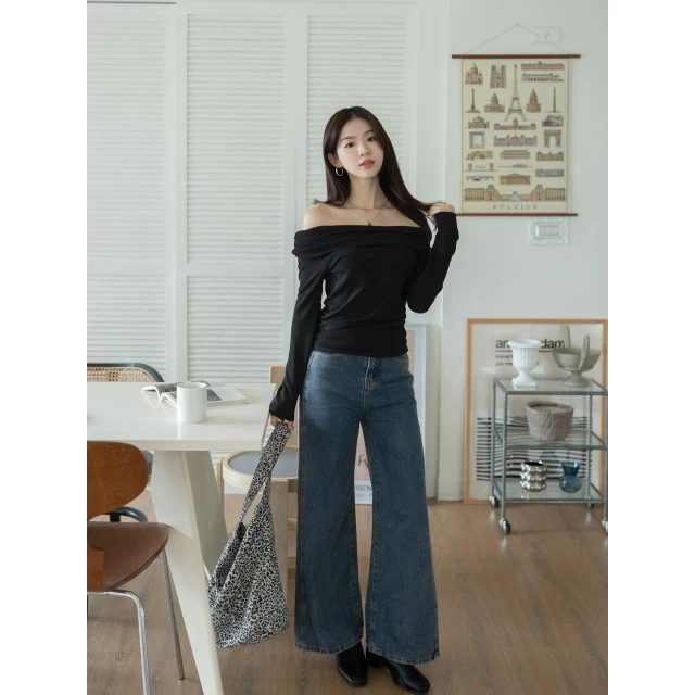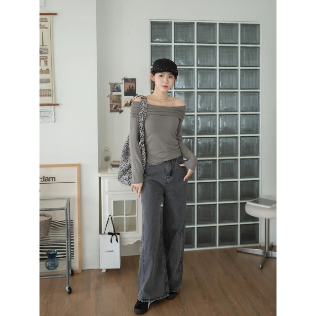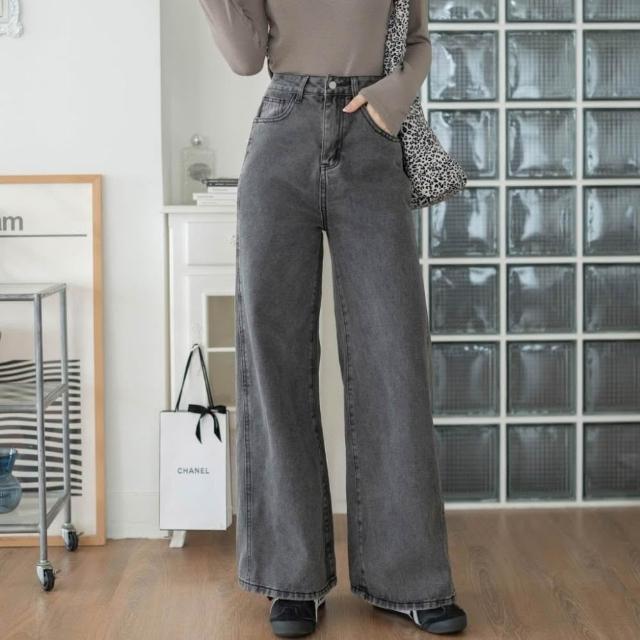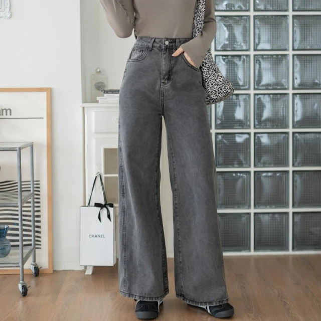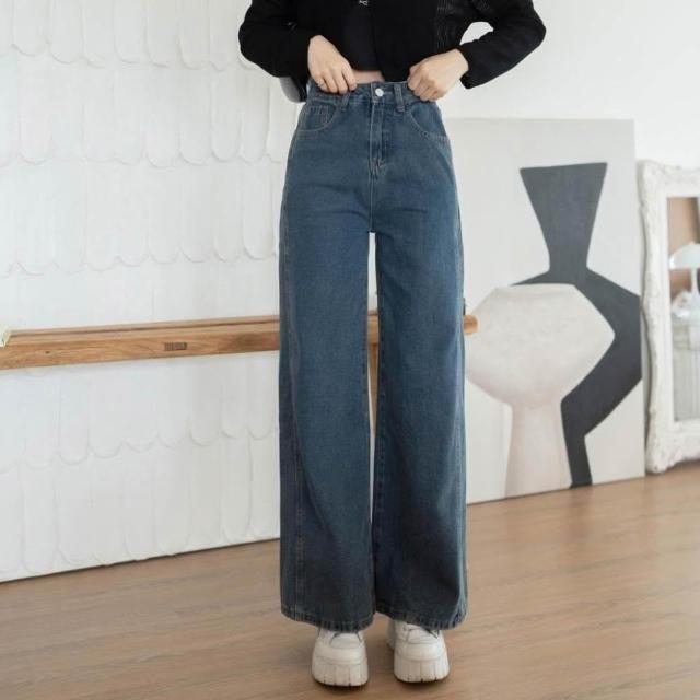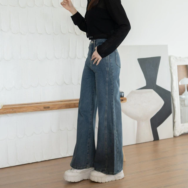 「現」獨家訂製!水洗美式剪裁牛仔寬褲-DesireShop