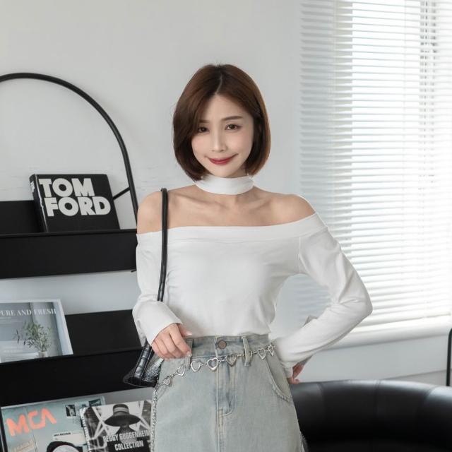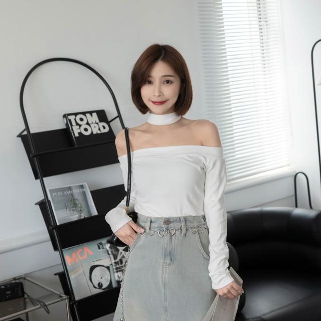 現貨~兩面穿!繞脖一字領長袖上衣 掛脖上衣 露肩-DesireShop
