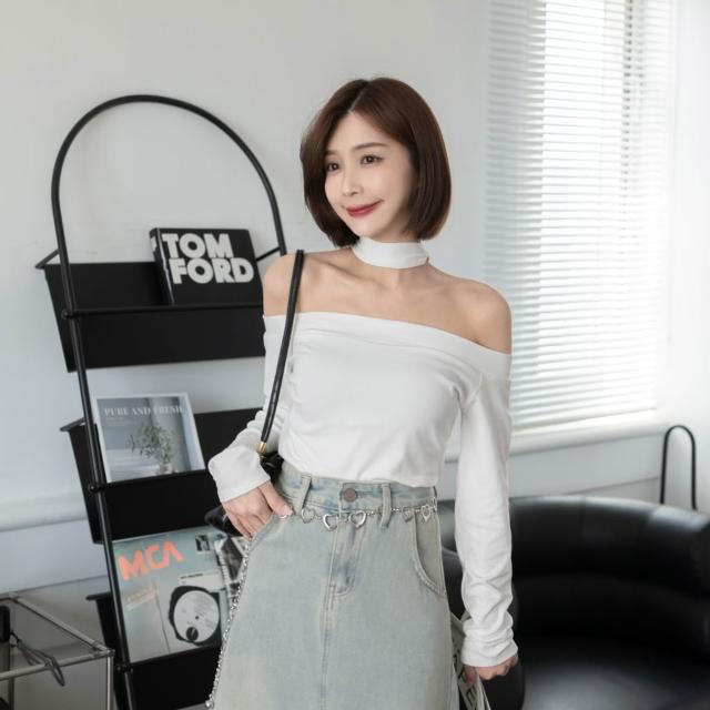 現貨~兩面穿!繞脖一字領長袖上衣 掛脖上衣 露肩-DesireShop