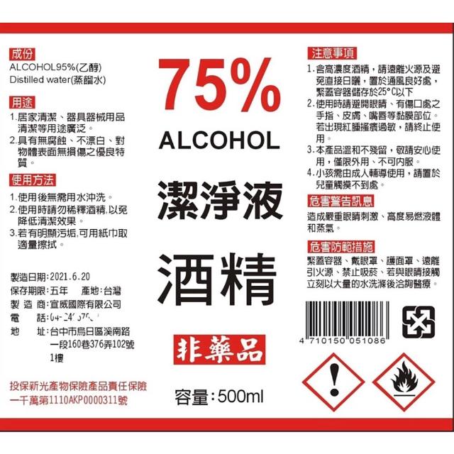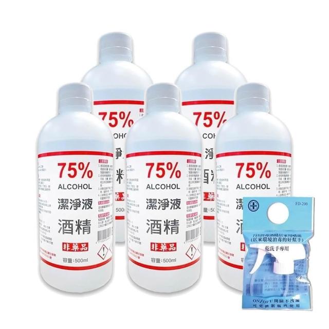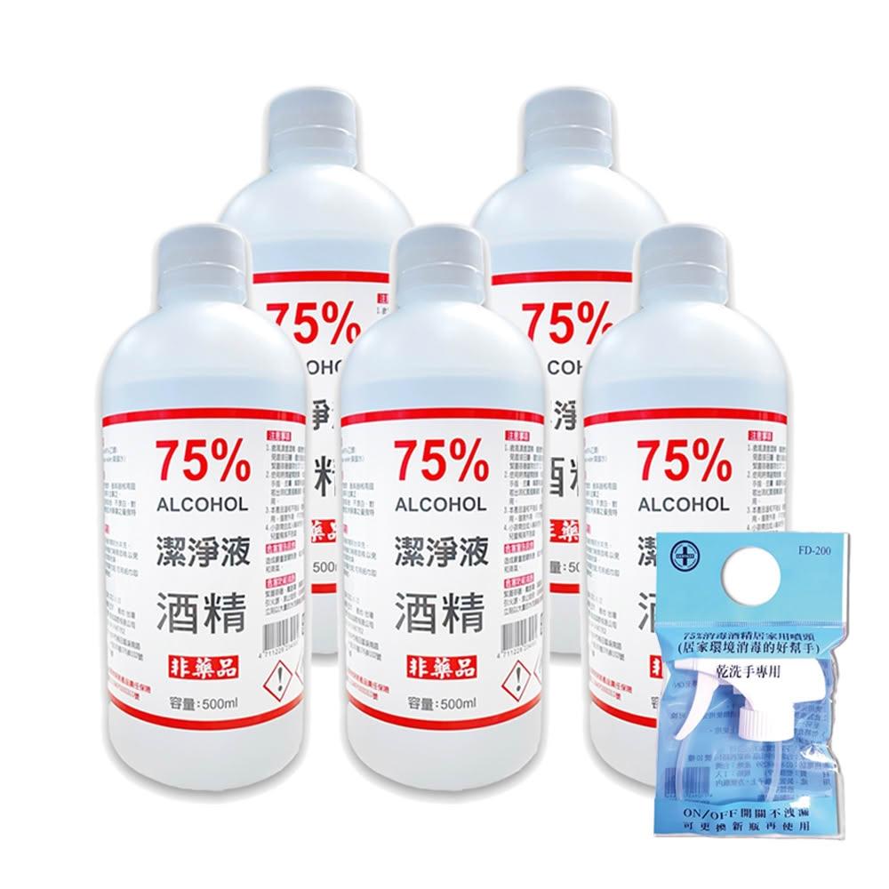 宣威 75%酒精 500mlx5瓶+送噴頭x1 (共2500ml/清潔液/酒精液/壹品藥局)
