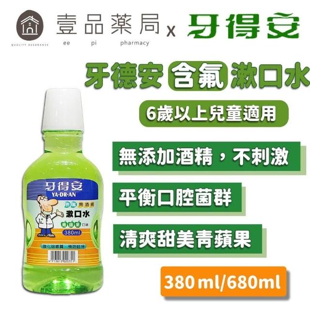 牙得安 含氟漱口水青蘋果口味 380ml 無酒精漱口水 漱口液 壹品藥局