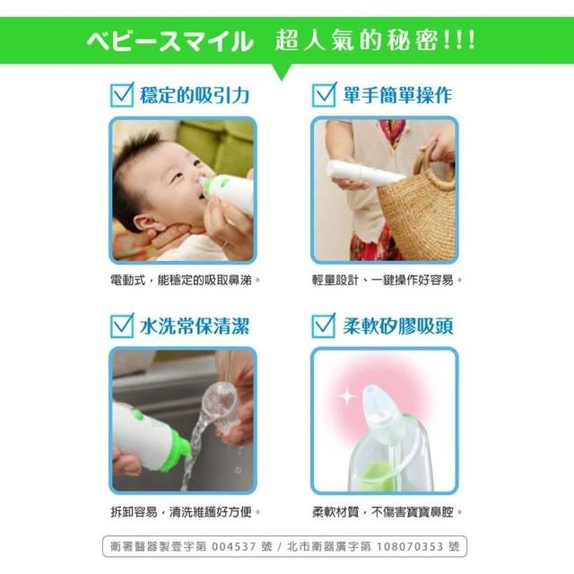 - 透明吸嘴,可看見鼻涕流向