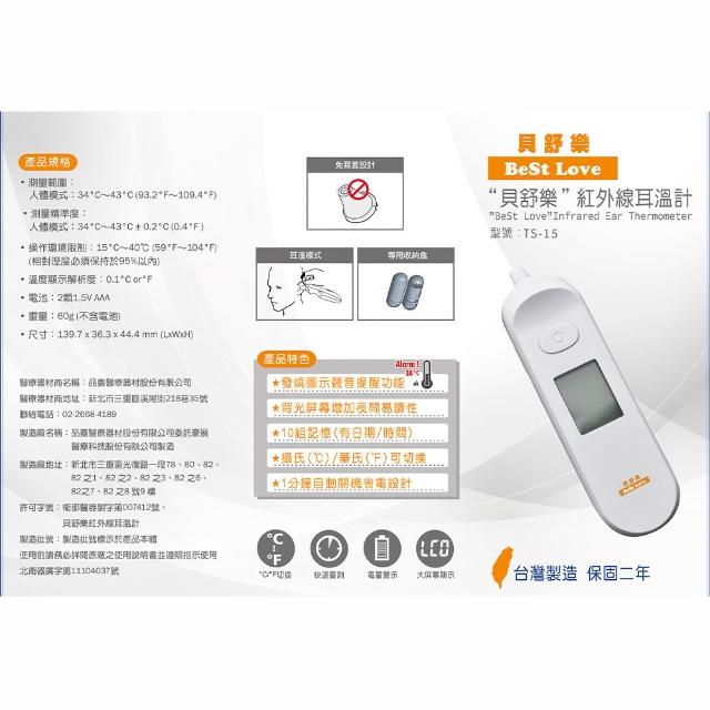 貝舒樂 紅外線耳溫計 TS-15 附收納盒 耳溫槍 體溫計 壹品藥局