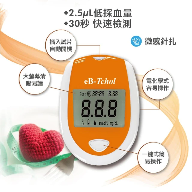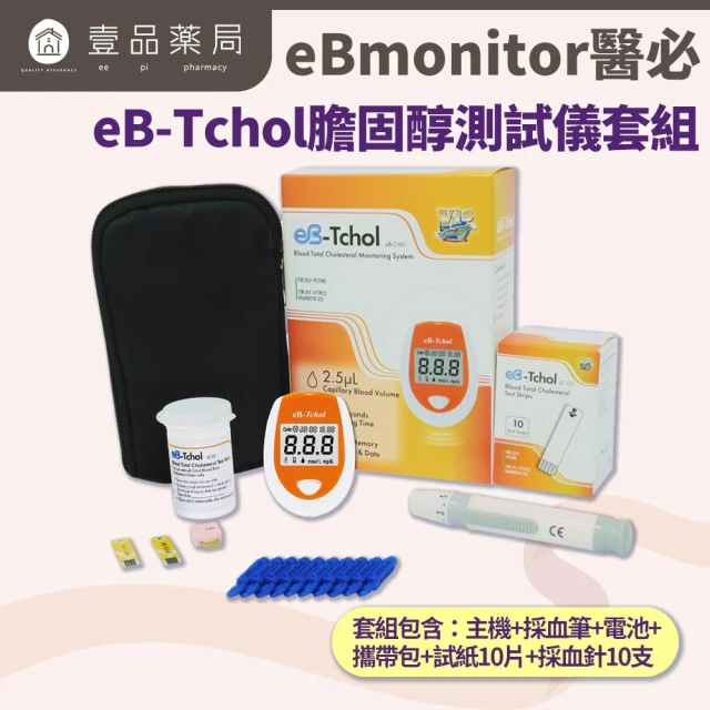 醫必 eB-Tchol膽固醇測試儀套組 1組/盒 (膽固醇/量測試紙/壹品藥局)
