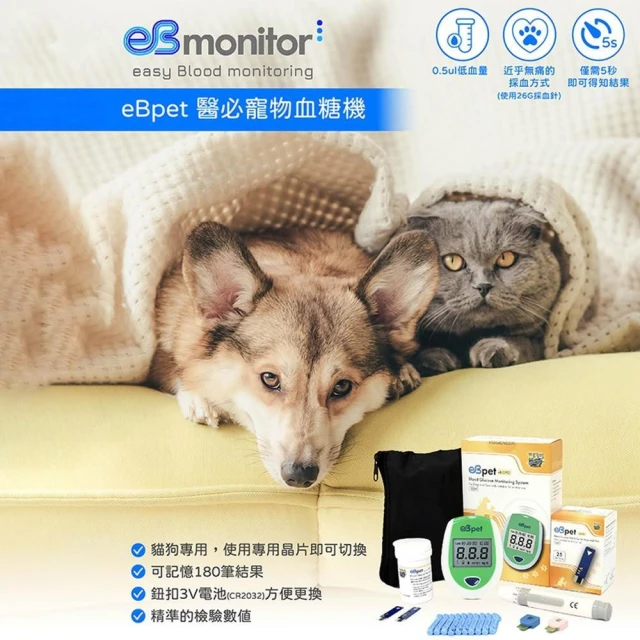 eBmonitor醫必 eBpet寵物血糖測試儀套組 1組/盒 (貓狗適用/寵物血糖機/壹品藥局)