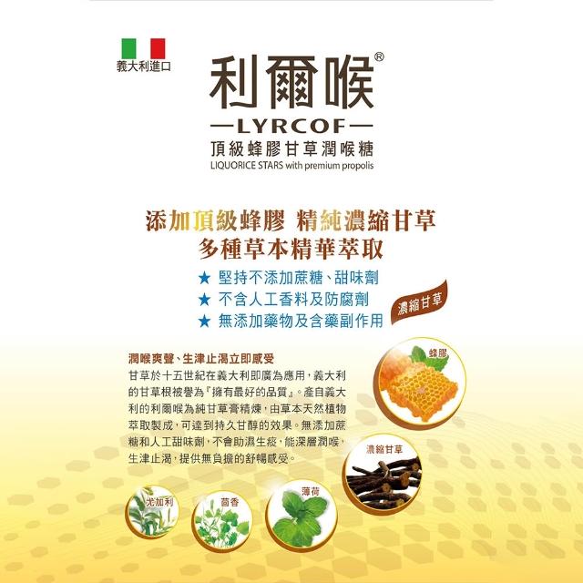 維維樂利爾喉頂級蜂膠甘草潤喉糖 17g/盒 (附分享包x5/蜂膠喉糖/義大利進口/喉片/壹品藥局)