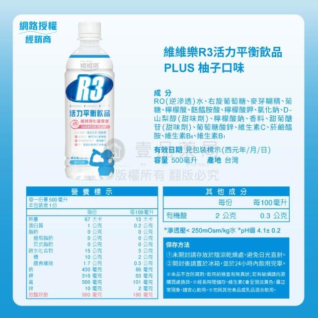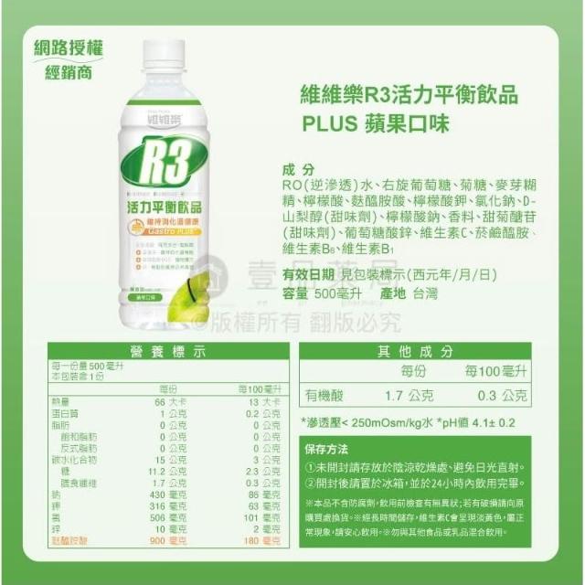 維維樂R3活力平衡飲品 500ml/瓶 (電解質/電解水/壹品藥局)