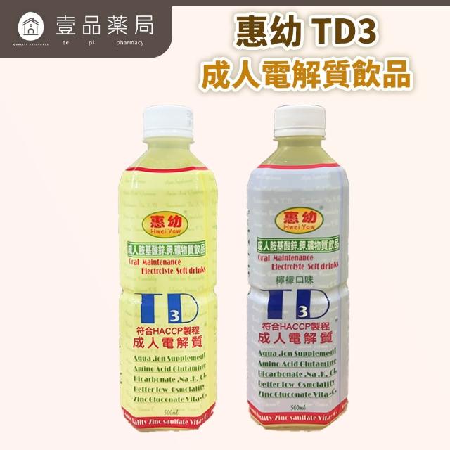 惠幼 TD3成人電解質飲品 500ml/瓶 (原味/檸檬/電解水/麩醯胺酸/壹品藥局)