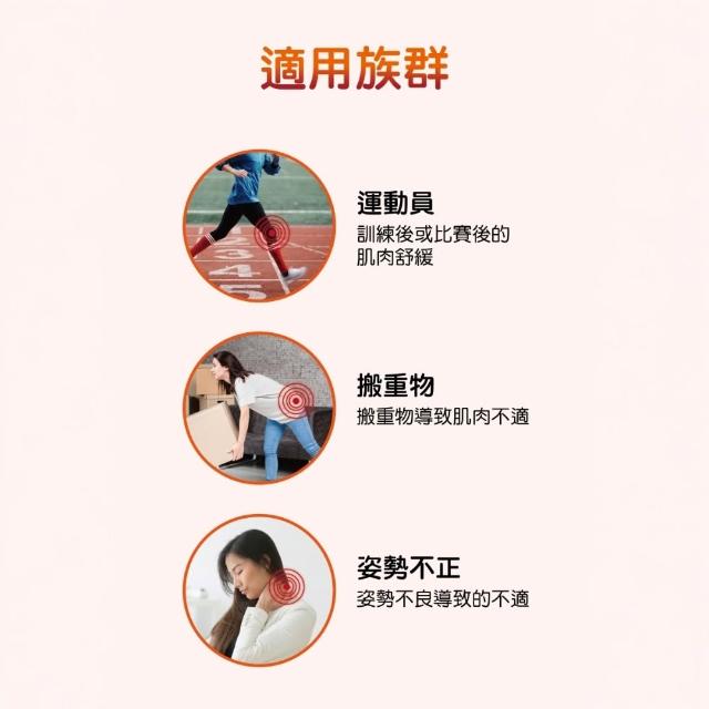 - 適用運動後、貼身按摩、舒緩不適