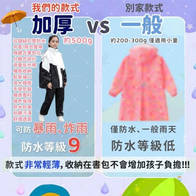 兒童雨衣 中大童雨衣 防暴雨 含書包位 獨家新升級強化防水 拉鍊加鈕扣 小朋友雨衣 兩件式雨衣(檢驗合格 贈收納袋 )