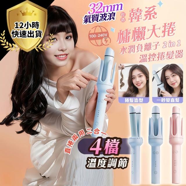 二合一直捲髮棒 全自動捲髮棒 32mm捲髮直髮梳 蛋捲棒 直捲兩用電棒 負離子離子夾 波浪夾