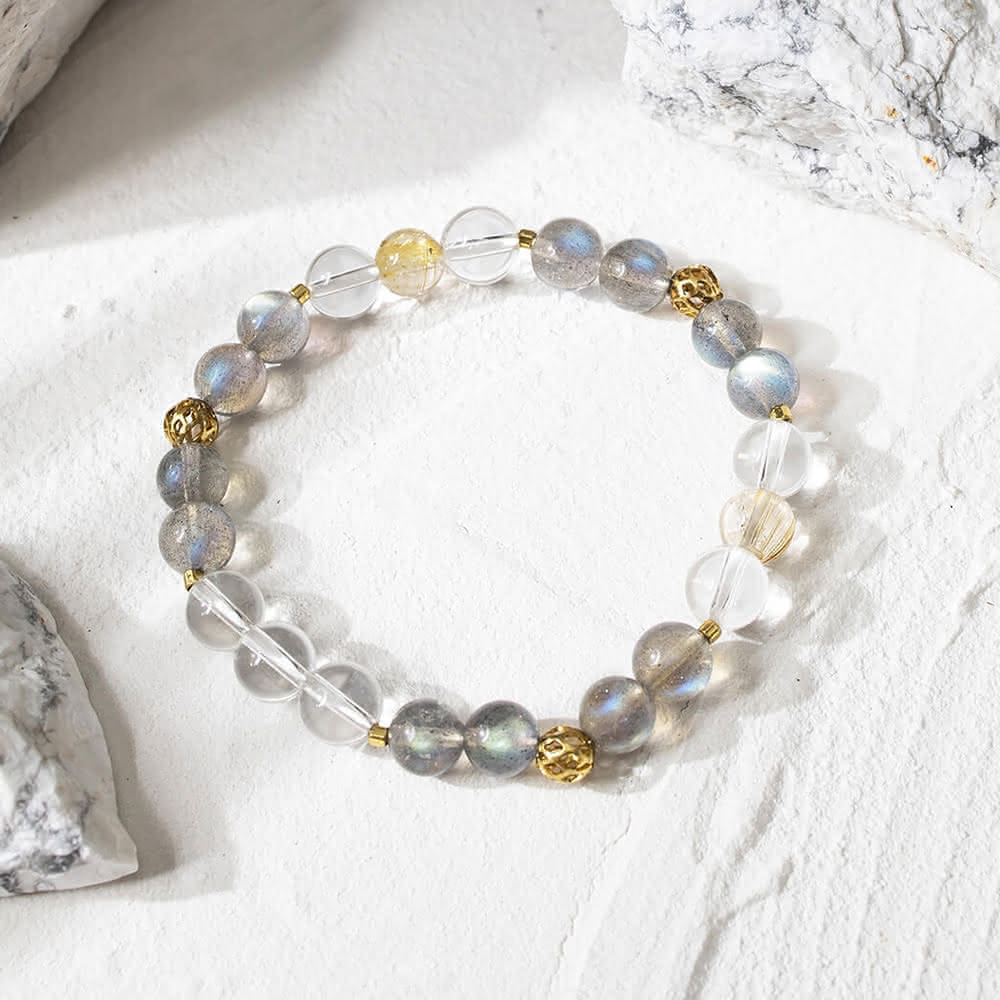 月色真美光之祝福 l 鈦晶拉長石白水晶手鍊(B06 嚴選天然水晶 鑑定師把關)