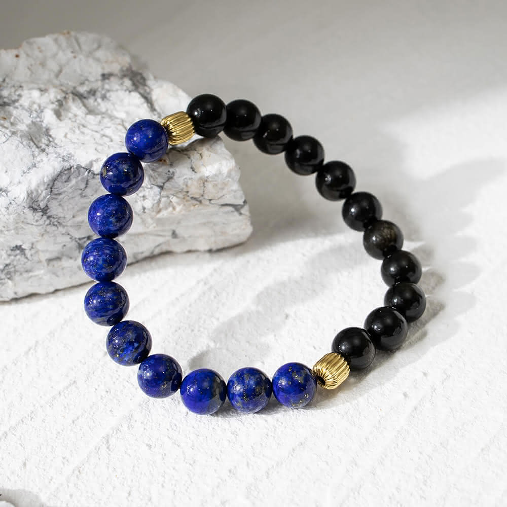 月色真美太極 l 海闊天空 l 青金石黑曜石水晶手鍊(B03 嚴選天然水晶 鑑定師把關)