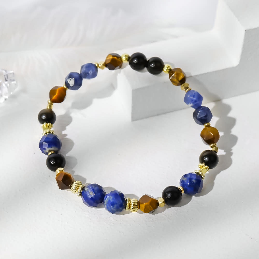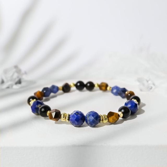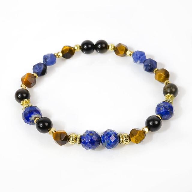 月色真美星辰大海女款- 黃虎眼石藍紋石青金石金沙黑曜石水晶手鍊(A98 嚴選天然水晶 鑑定師把關)