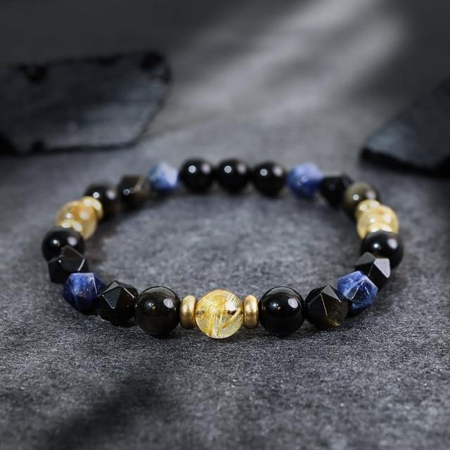 月色真美破曉 l 鈦晶藍紋石黑曜石手鍊(B14 嚴選天然水晶 鑑定師把關)