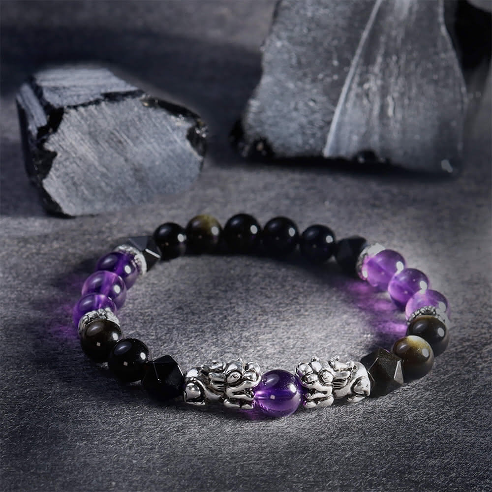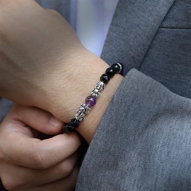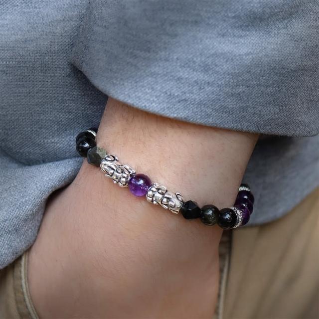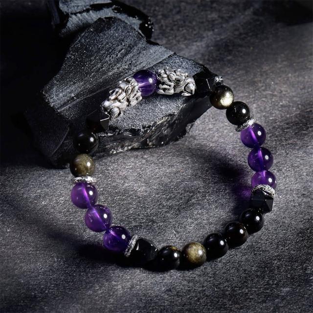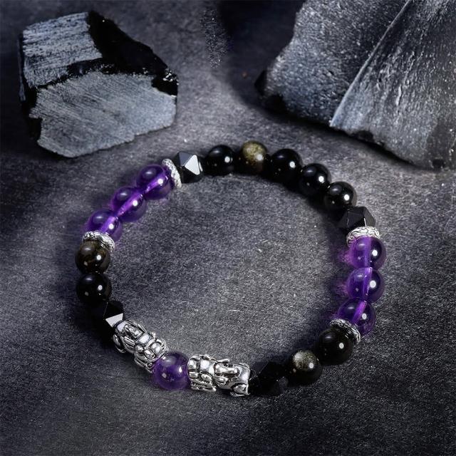 月色真美瑞獸貔貅 l 祥瑞 l 紫水晶金沙黑曜石手鍊(B23 嚴選天然水晶 鑑定師把關)