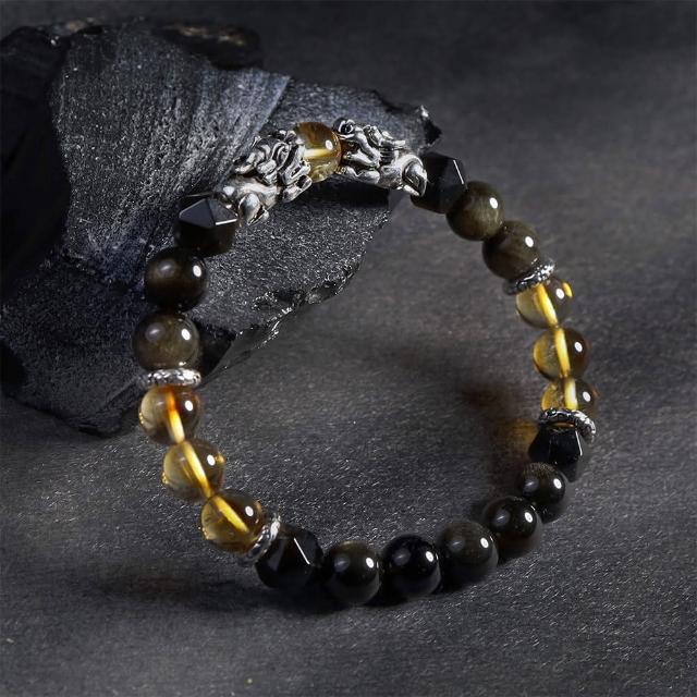 月色真美瑞獸貔貅 l 輝煌 l 黃水晶金沙黑曜石手鍊(B21 嚴選天然水晶 鑑定師把關)