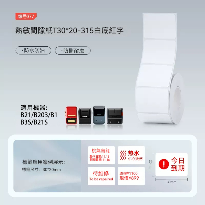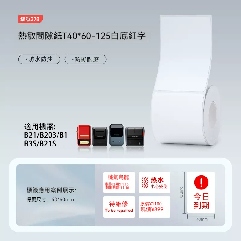 NIIMBOT 精臣精臣B21pro/B21S/B1/B3S/B31/B4/k3 純白系列貼紙 白色標籤紙 打價標貼紙 價錢標示 熱感應貼紙
